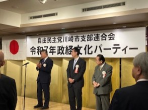 令和7年10月29日(水)川崎日航ホテルにおいて『自由民主党川崎市支部連合会 令和7年度政経文化パーティー』が開催され、当本部より米田政務委員長が出席致しました。