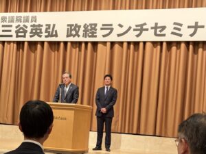 « 県議会議員 桐生ひであき 第16回☆とっても楽しいクリスマス会☆に出席致しました。 | メイン | 三谷英弘 政経ランチセミナーに出席致しました。 2025.12.22 令和7年12月22日(月)ロイヤルホールヨコハマにおいて「三谷英弘 政経ランチセミナー」が開催され、当本部より山﨑 一守 幹事長が出席致しました。 三谷 英弘 衆議院議員